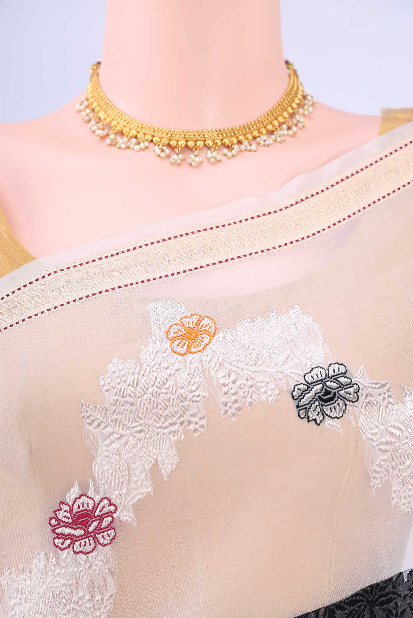 Off White Banarasi Kora Silk Saree Off White Banarasi Kora Silk Saree