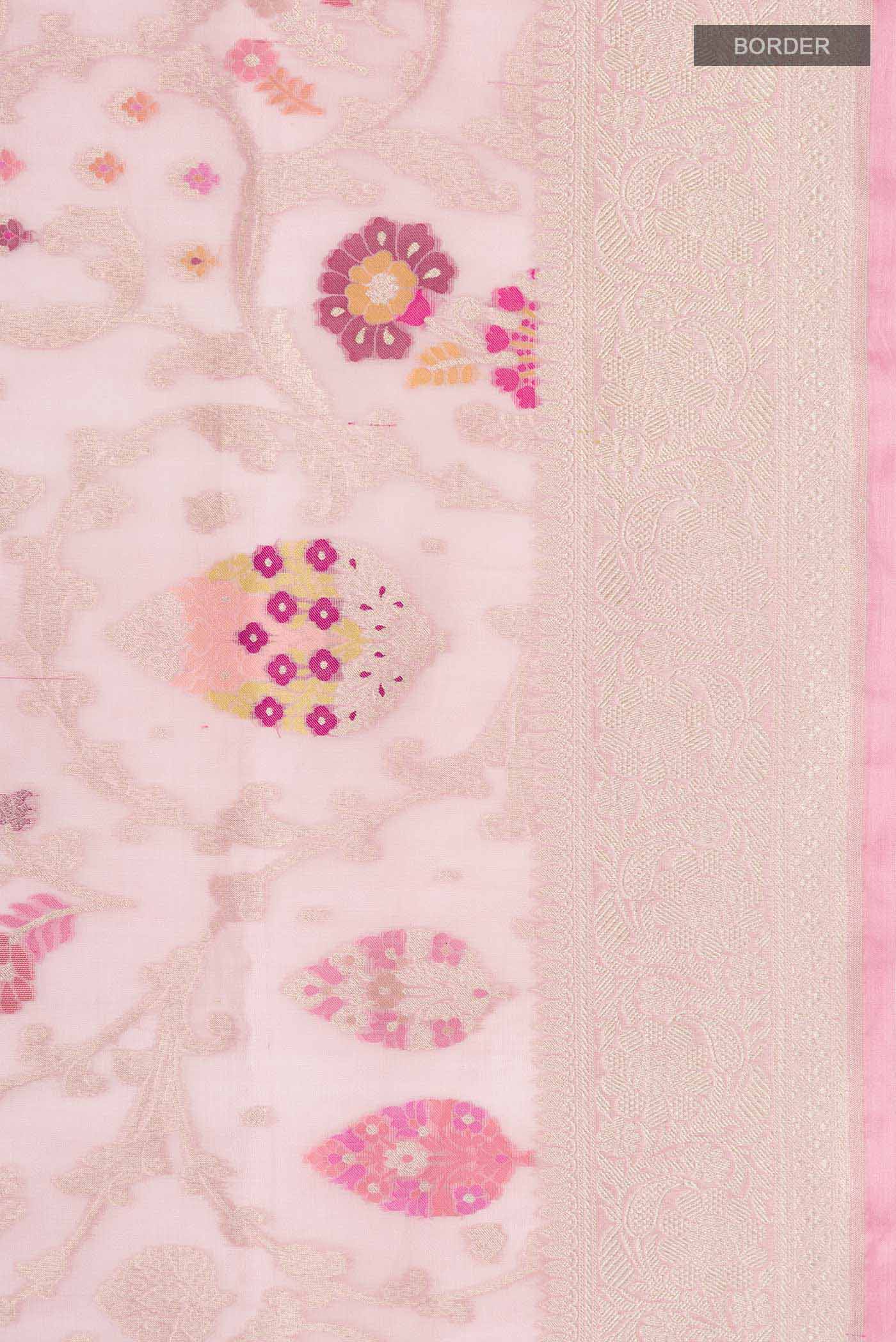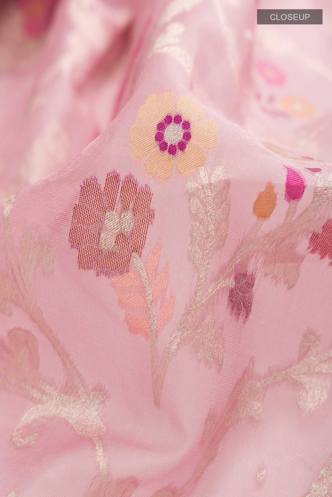 Rose pink Banarasi Kora Silk Saree -