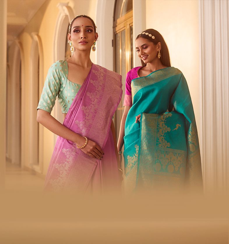 Kanchipuram Pattu sarees are impeccably crafted with beautiful traditional patterns and are known for their richness and grandeur. Kanchipuram silk exudes a royal vibe and enthralls every generation. The luxurious weaves, soft fabric, classic sheen, and embellished zari work put the saree on a pedestal.
