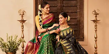 Handwoven in pure silk with rich gold zari, each saree is a quiet tribute to love, prosperity, and timeless beauty.