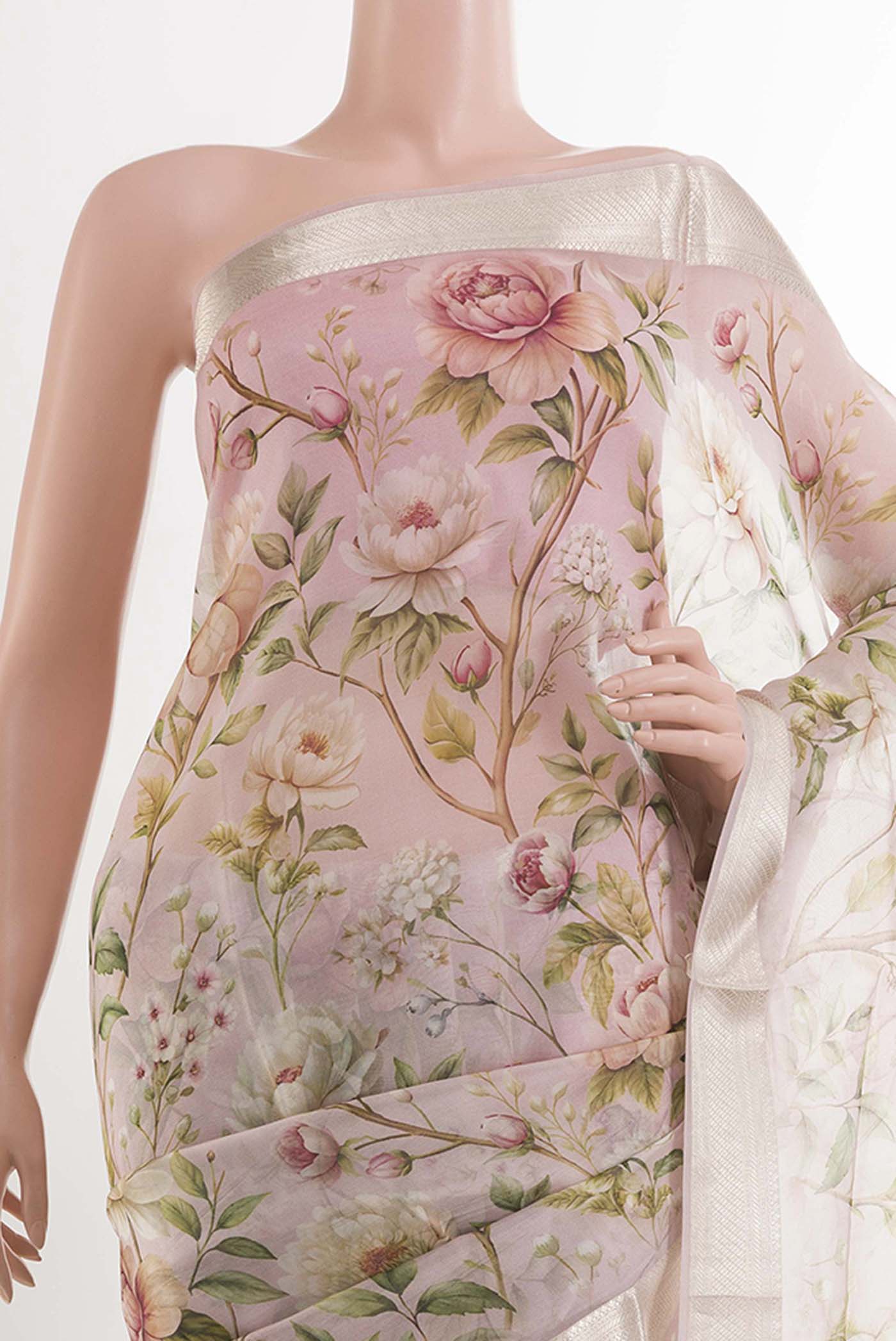Flourishing Friendships Pink Pure Organza Silk Saree Flourishing Friendships Pink Pure Organza Silk Saree