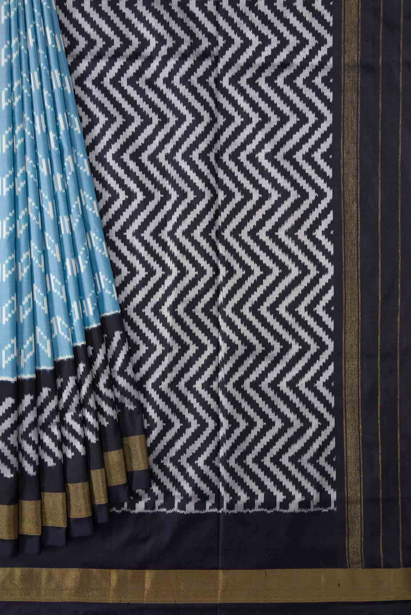 Sky Blue Dual Tone Double Ikat Saree -