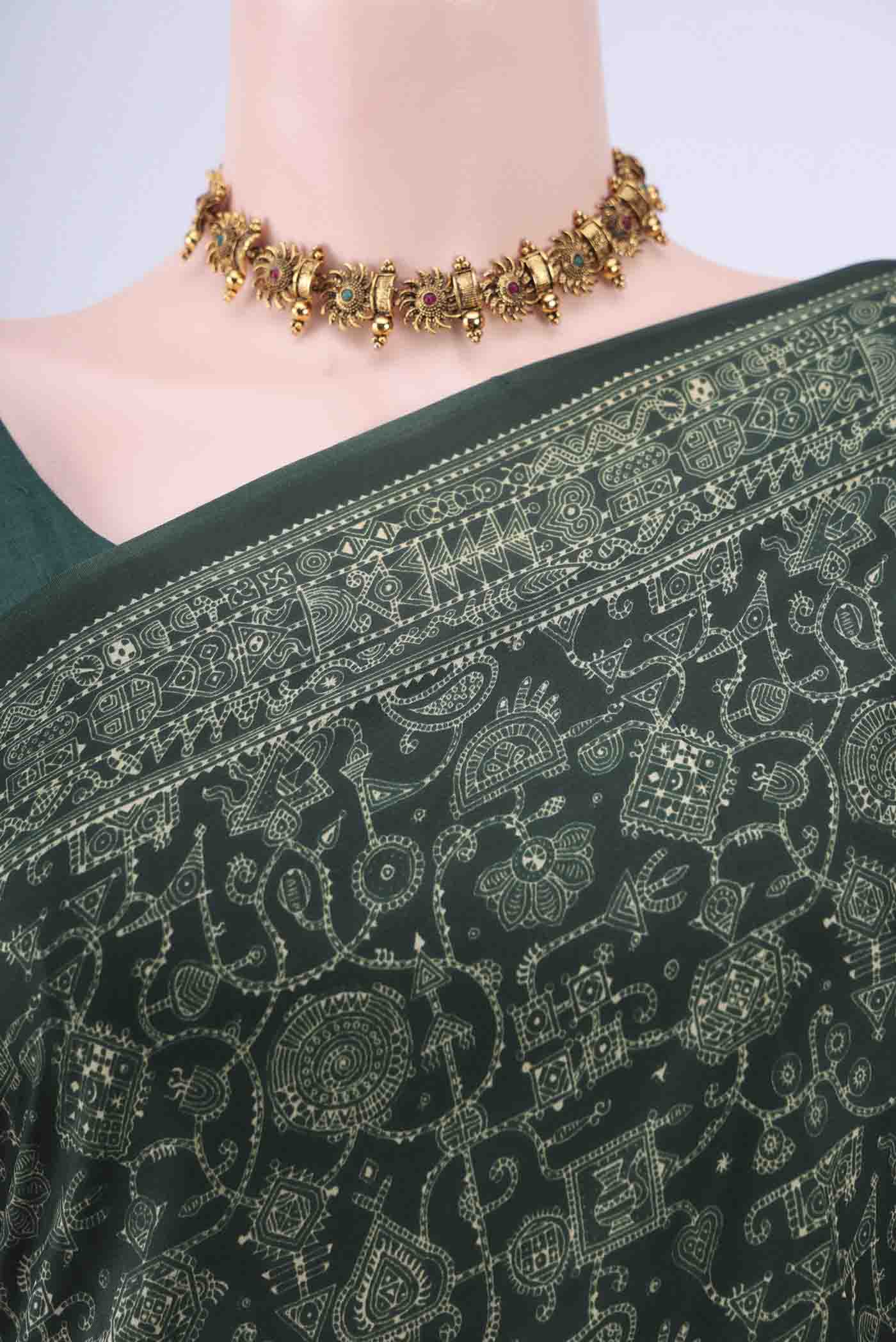 Bottle Green Printed Silk Saree Bottle Green Printed Silk Saree