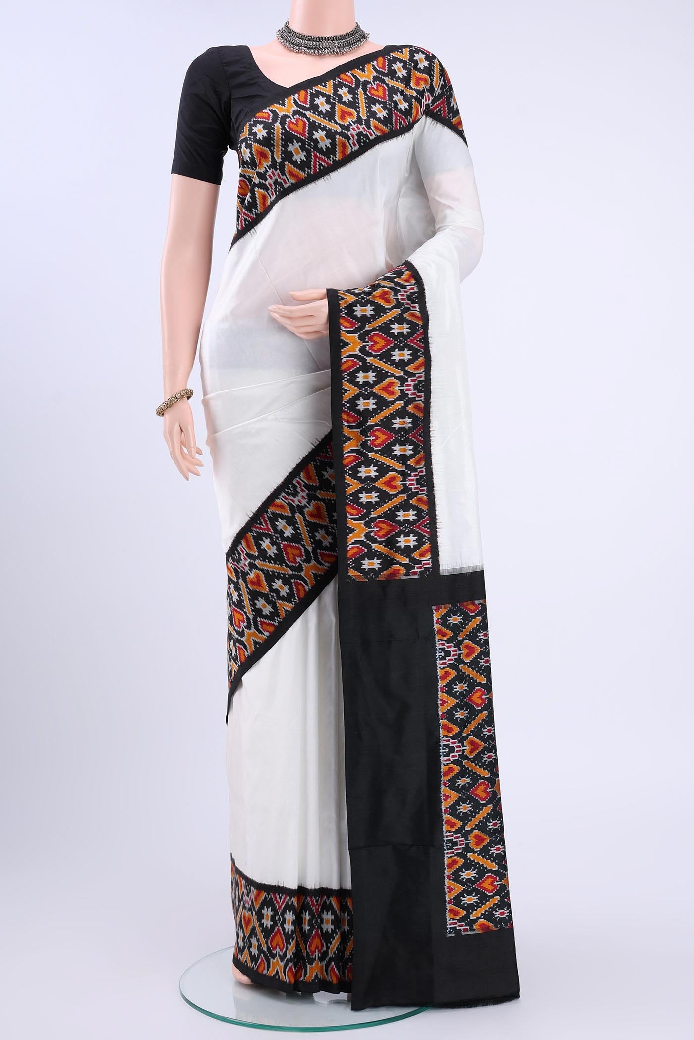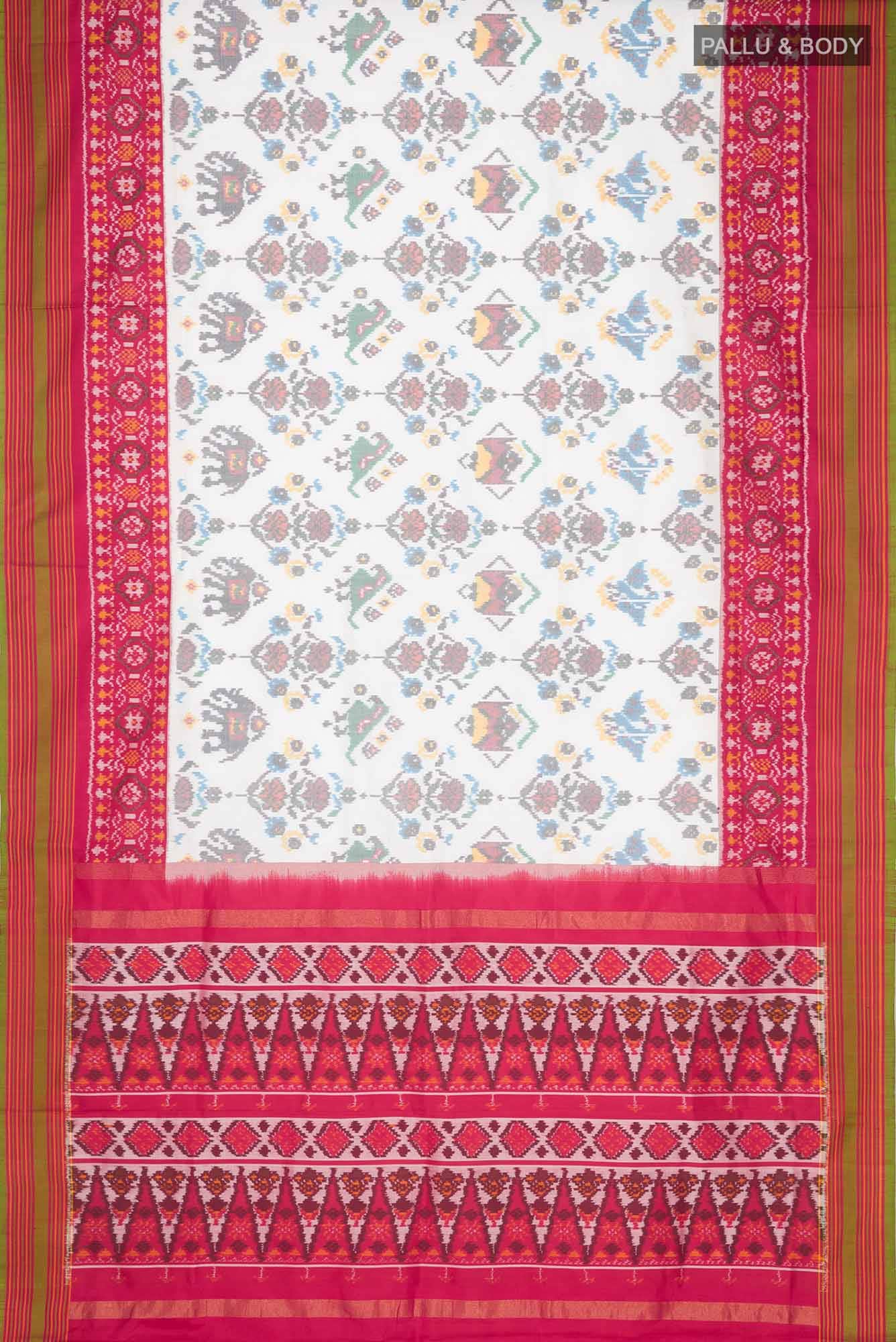 White Rajkot Patola Silk Saree White Rajkot Patola Silk Saree