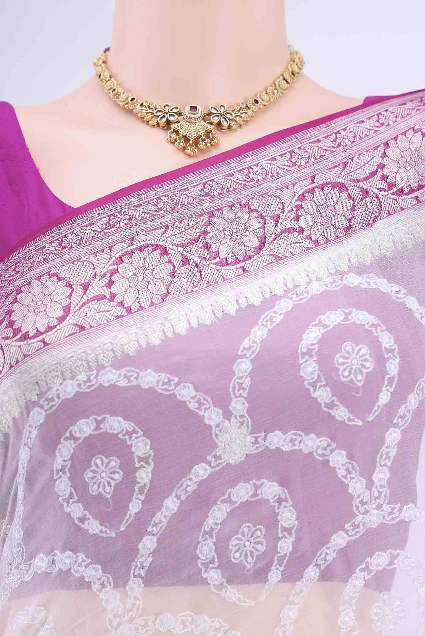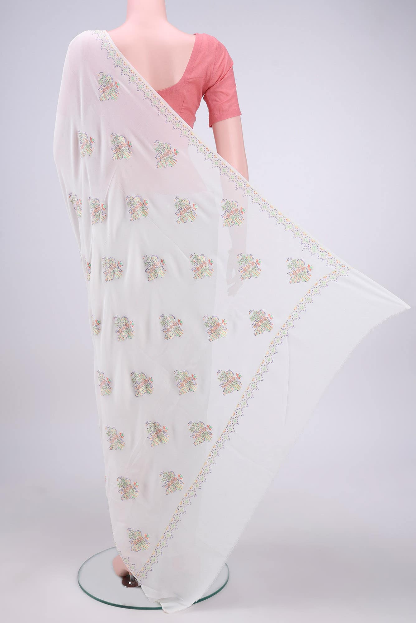 White Kashmiri Saree White Kashmiri Saree