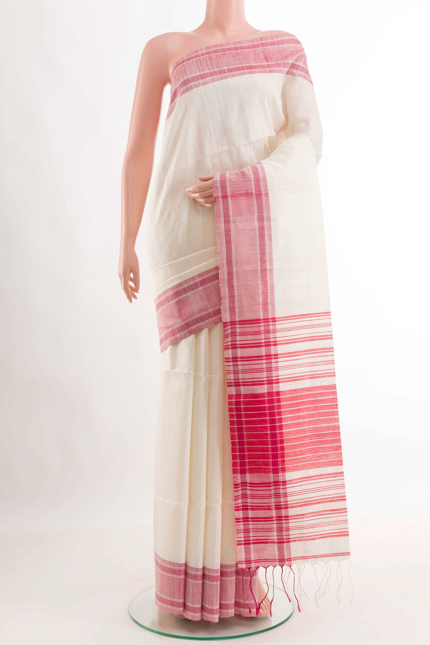 White Dual Tone Blended Linen Saree White Dual Tone Blended Linen Saree