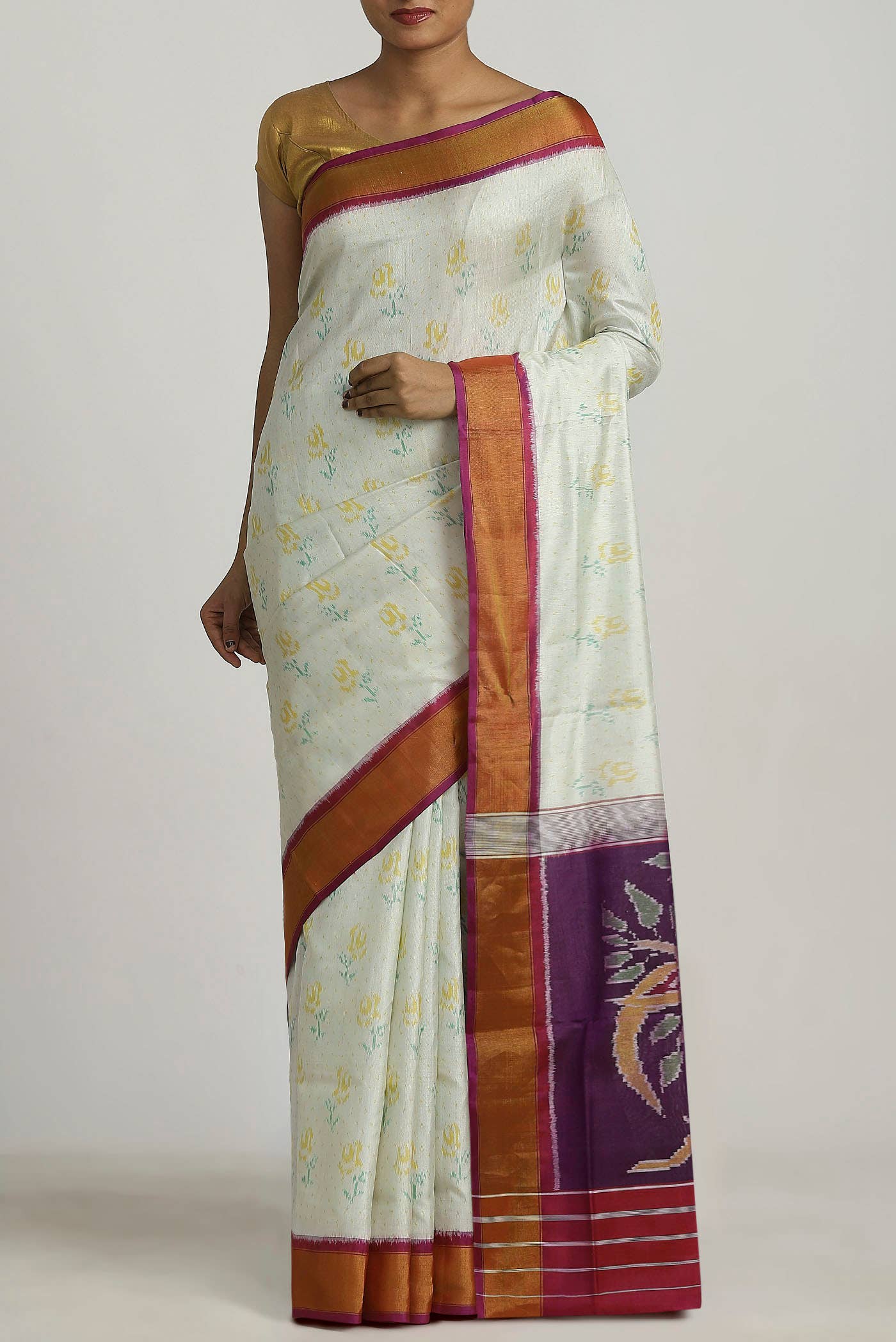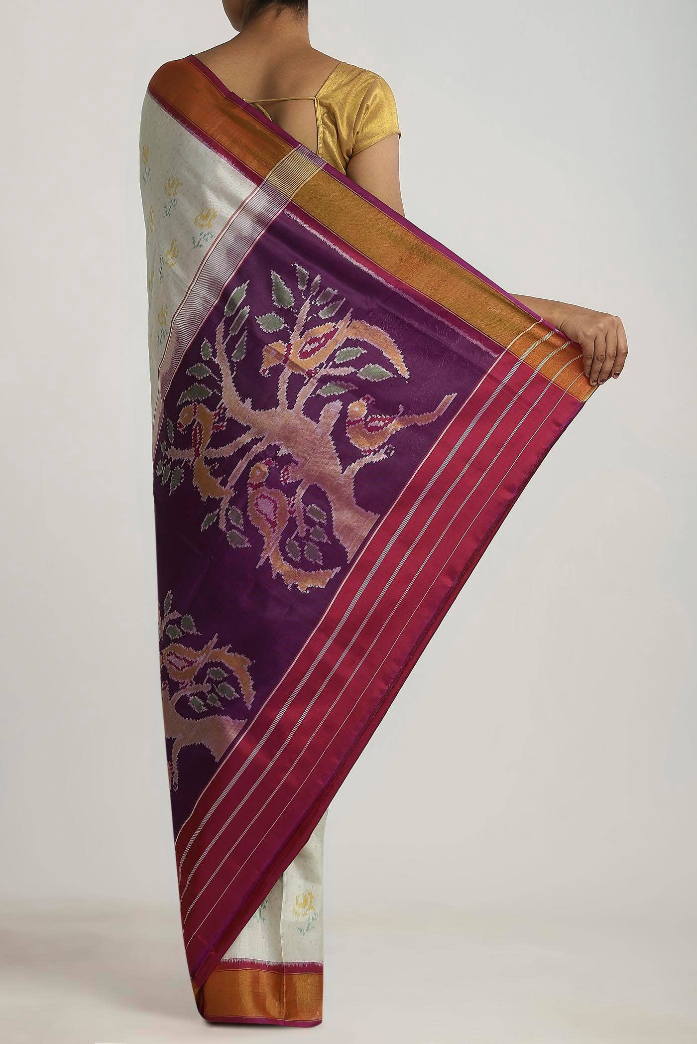 White Dual Tone Double Ikat Saree White Dual Tone Double Ikat Saree