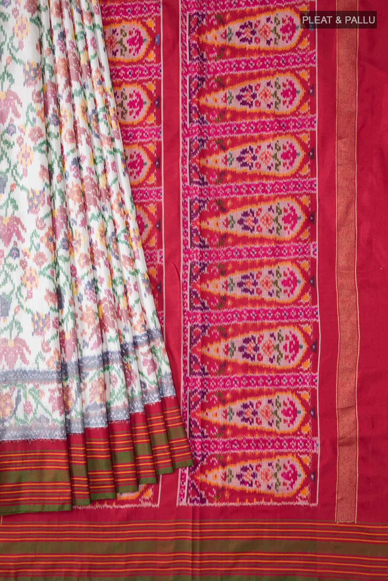 White Rajkot Patola Silk Saree